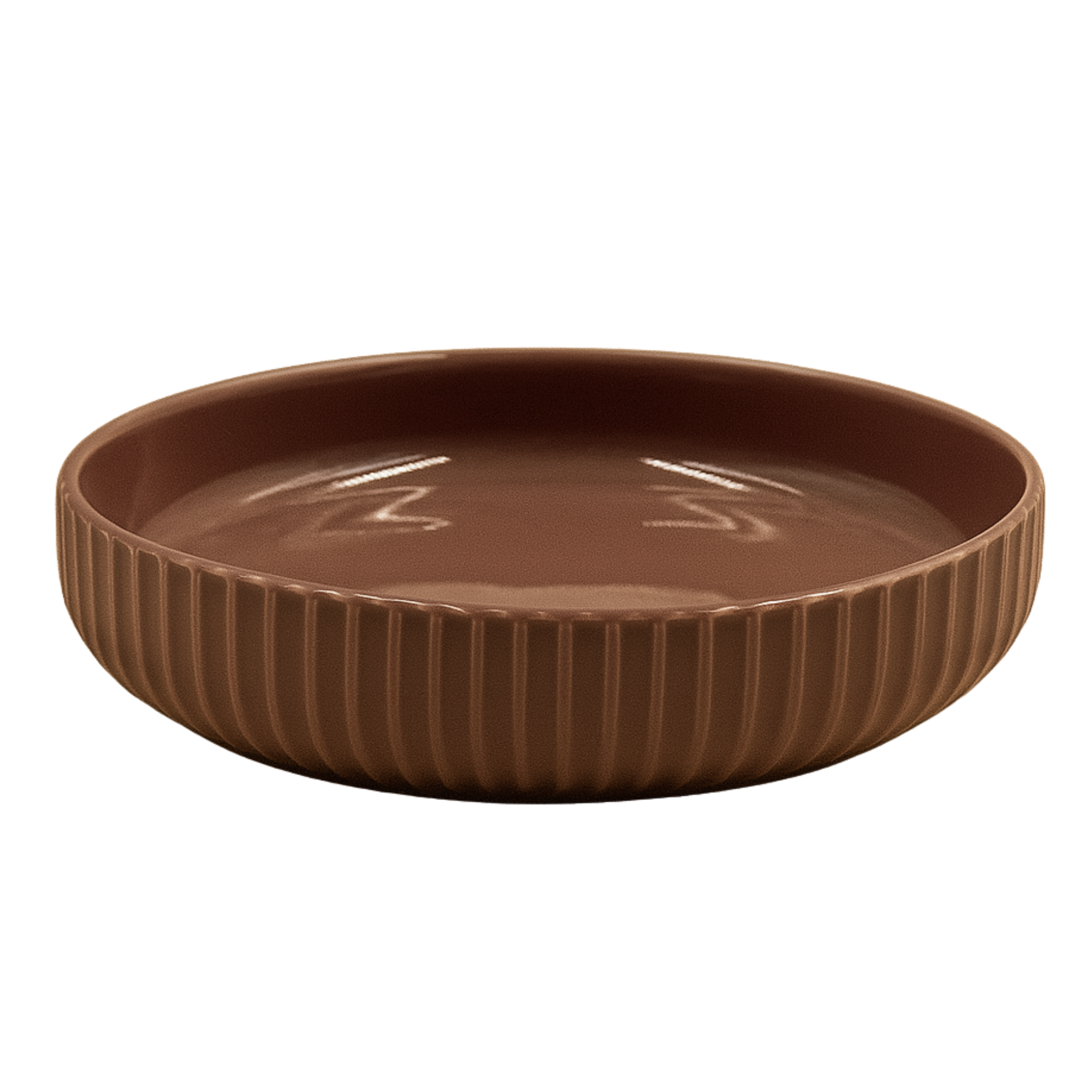 Plato hondo de cerámica color morado con diseño moderno y textura acanalada en el exterior. Ideal para servir sopas, pastas, ensaladas o platos con salsas, aportando un toque elegante y contemporáneo a la mesa. Su acabado liso en el interior facilita la limpieza y lo hace práctico para el uso diario o para ocasiones especiales.