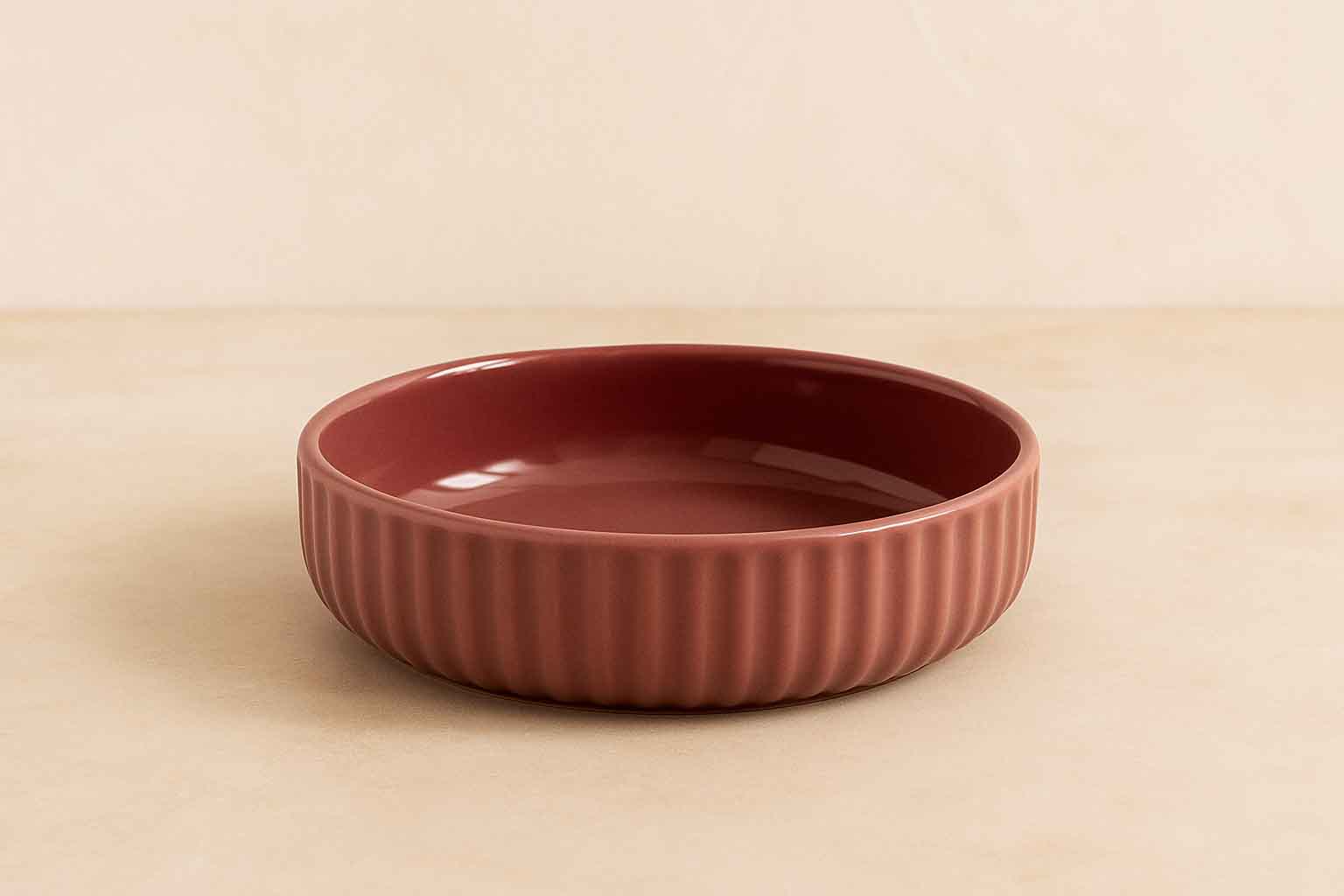 Pocillo pequeño de cerámica color morado con diseño moderno y textura acanalada en el exterior. Ideal para servir salsas, frutos secos, aderezos o pequeños acompañamientos. Su acabado liso en el interior facilita la limpieza y lo hace práctico para el uso diario, aportando un toque elegante y contemporáneo a la mesa.